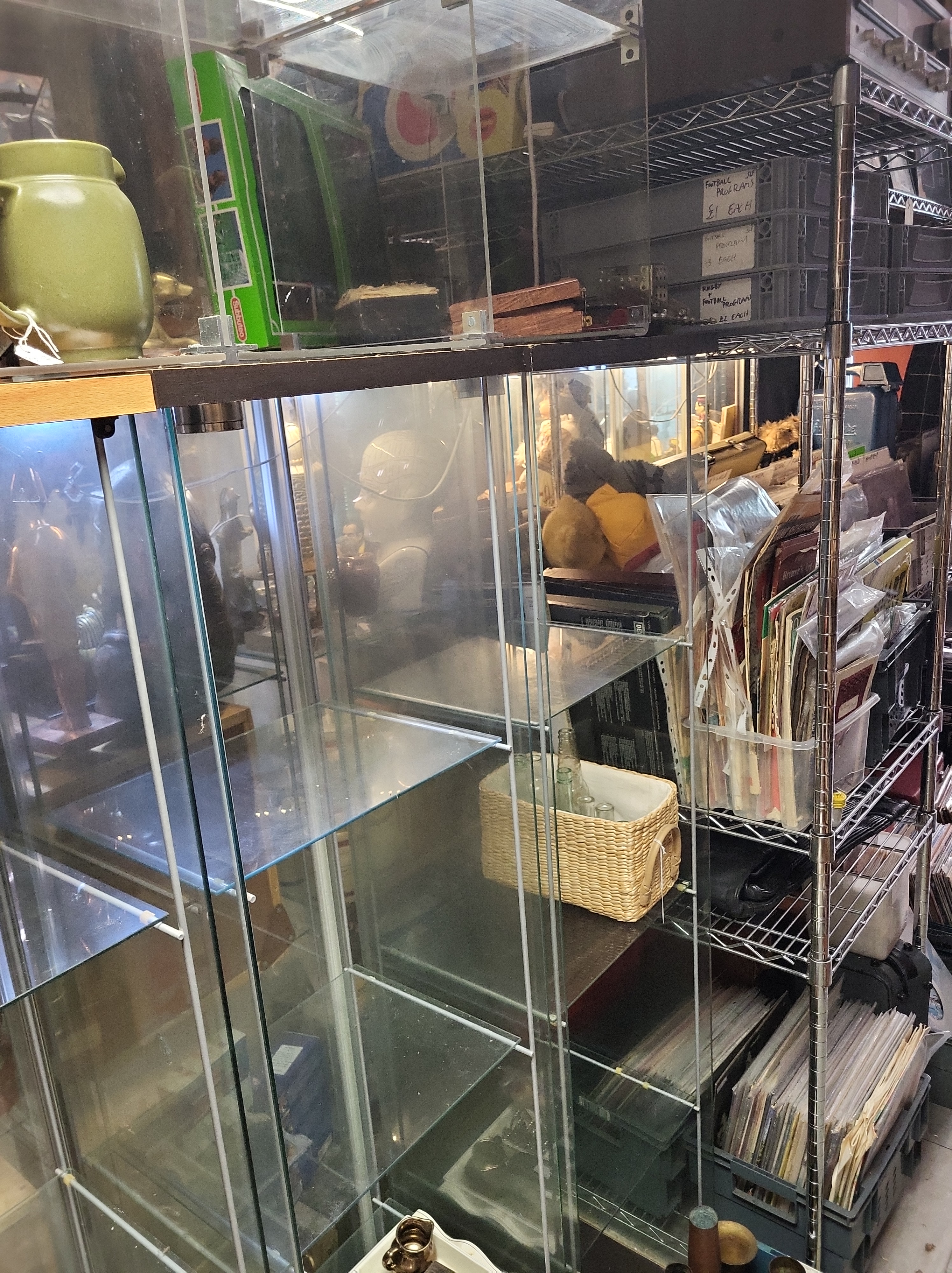 Shop space being made with new glass doors for cabinets and locks shelf space from £15 per month please contact the manager Sean on 07739755659 for details on rental space